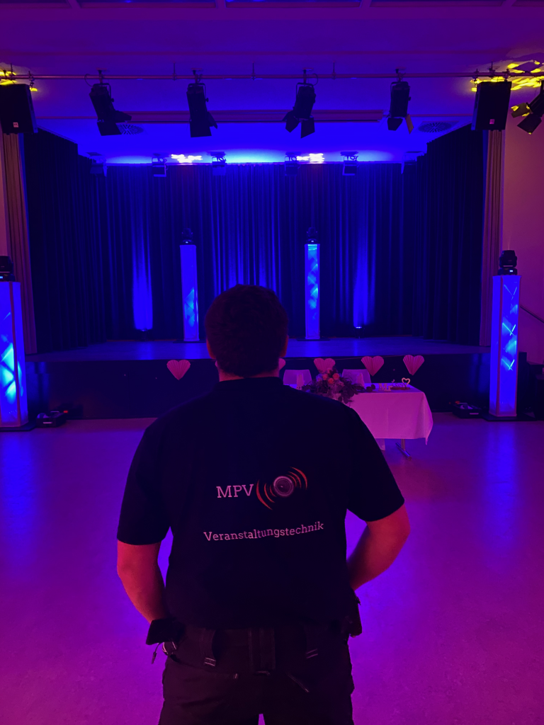 Das Team von MPV Veranstaltungstechnik kümmert sich um Auf- und Abbau und um die Betreuung während Ihrer Veranstaltung durch Licht- und Tontechniker.